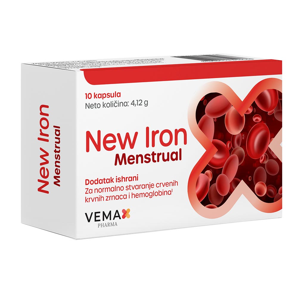 New Iron Menstrual predstavlja superiornu i kompletnu formulu za nadoknadu gvožđa namenjenu ženama u periodu menstruacionog ciklusa čime se povoljno utiče na nedostatak  energije, umor, bolove, glavobolju i druge simptome koji se javljaju tokom menstrualnog ciklusa.